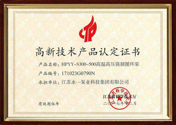 高新技术产品认定证书